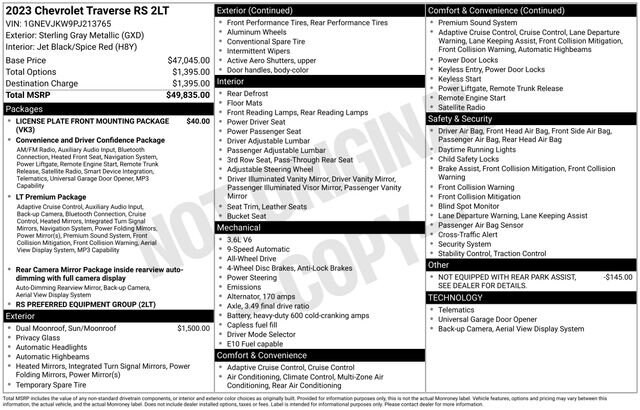 Designed with your comfort and convenience in mind, the 2023 Chevrolet Traverse RS is the perfect blend of style, technology, and performance. Experience the difference for yourself and schedule a test drive today. We're confident this SUV will exceed your expectations and become your trusted companion on the road ahead.